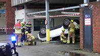 Auto op z'n dak bij parkeergarage ZMC Zaandam